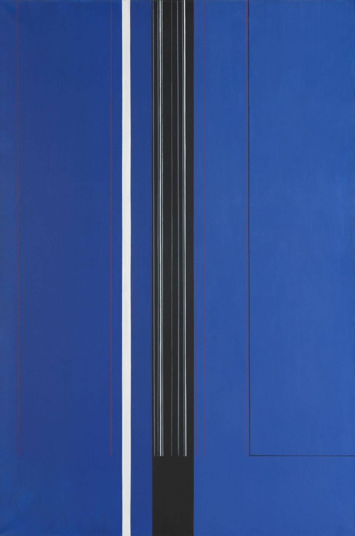 Zoals de naam al doet vermoeden, is Brugge (1968) geïnspireerd op een stedelijk landschap, net als een ander werk, Venici, uit hetzelfde jaar. Het motief is gestileerd in een extreme verticale puurheid. Het werk komt op een scharniermoment in de carrière van Luc Peire. Het is na een verblijf in New York in 1965-66 dat de kunstenaar de voorkeur begint te geven aan abstract verticalisme.Het schilderij ziet er eenvoudig uit, maar is het resultaat van veel denkwerk en een subtiele constructie. De schilder wisselt brede banden en dunne verticale lijnen af op een monochrome blauwe achtergrond. Men herkent ook rechthoekige vormen. Hoewel blauw overheerst, doorkruisen andere kleuren de picturale ruimte: wit, zwart en rood verlevendigen het geheel en verwijzen naar andere ruimtes. Sommige lijnen lopen verticaal door het schilderij, terwijl andere halverwege stoppen, ter hoogte van de zwarte rechthoek. De afstanden tussen de banden en lijnen zijn telkens anders.De kleuren geven variaties in gevoel weer. De lichte, heldere tinten weerspiegelen een vredige gemoedstoestand.