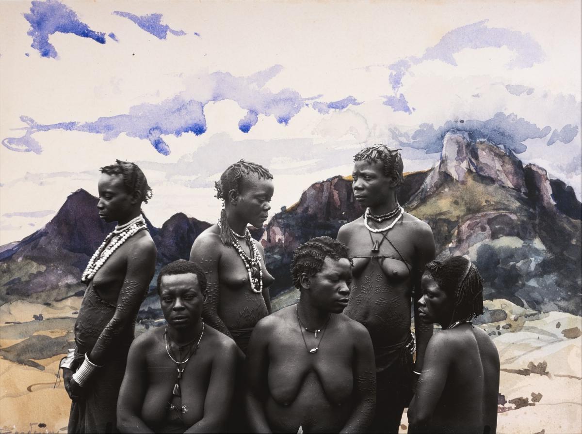 Portret #3: groep Urua vrouwen op een aquarel van Dardenne,