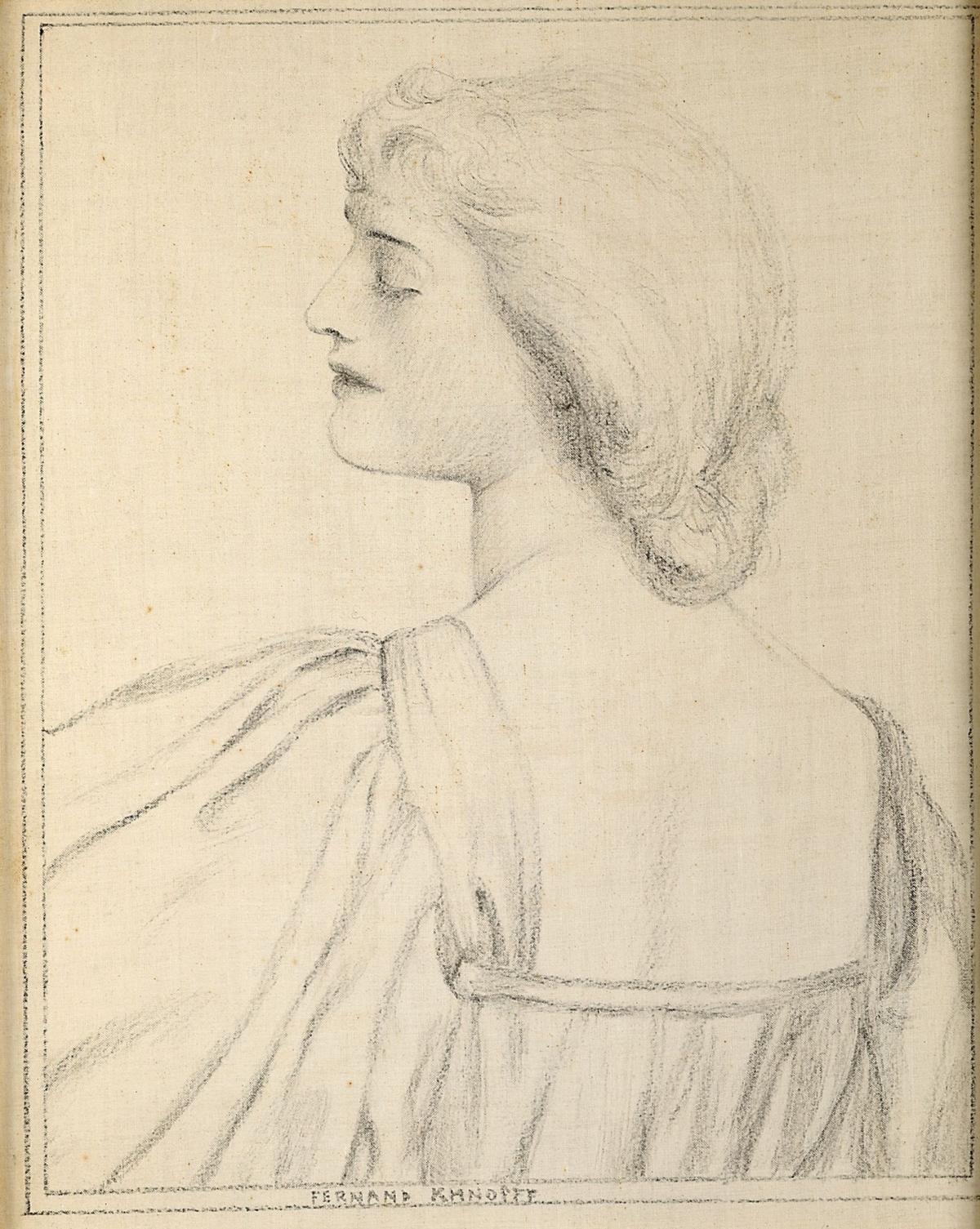 Het lievelingsonderwerp van Fernand Khnopff is de vrouw met de afwezige blik en de versteende houding, waarvoor zijn eigen zuster vaak model stond. Hier toont deze op de rug afgebeelde vrouw ons haar gezicht in profiel. Haar gesloten ogen verlenen haar pose iets mysterieus. Khnopff, die uit de hogere burgerij afkomstig was, bezocht de Academie voor Schone Kunsten van Brussel, waar James Ensor zijn medeleerling was. Hij raakte in de ban van het symbolisme en het prerafaëlisme die eind 19de eeuw in de mode waren. Hoewel Khnopffs oeuvre altijd enigmatisch is, behandelt hij de onderwerpen altijd met een grote verfijning.